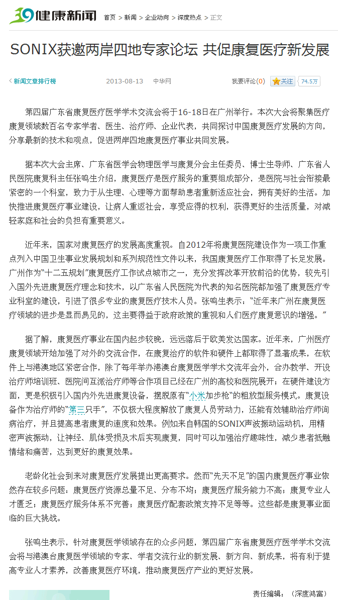 韩国SONIX声波振动运动机采用最新的声波振动原理,产生全身或者局部振动,改善各种病症,如脑中风后遗症、帕金森、慢性腰椎病痛、手术后康复等,获得多项国家专利认证,成为康复、医疗必备的健康器材。 而且,近年来,国家对康复医疗高度重视,广州作为“十二五规划”康复医疗工作试点城市之一,加强了对外的交流合作,在软件上紧密与港澳地区合作,举办康复医学学术交流年会、合作教学、开设治疗师培训班,医院间互派治疗师等已经在广州的高校和医院展开,硬件建设方面,积极引进国内外先进康复设备,学习国外先进的康复医疗理念和技术,韩国SONIX声波振动运动机就是一个很好的例子,可以更好的改善康复医疗环境,推动康复医疗产业发展。