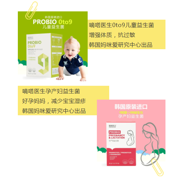 因此,家长在挑选益生菌时要考虑配方含有足够数量的活性益生菌,比如嘀嗒医生0to9儿童益生菌,由韩国妈咪爱研发,原装进口,选用100%丹麦丹尼斯克优质益生菌,每条活菌量高达50亿,而且添加了三种益生元及营养物质,能够促进肠道有益菌群的生长,更好的维护宝宝肠道微生态的平衡,增强宝宝免疫力,减少腹泻,抗过敏。